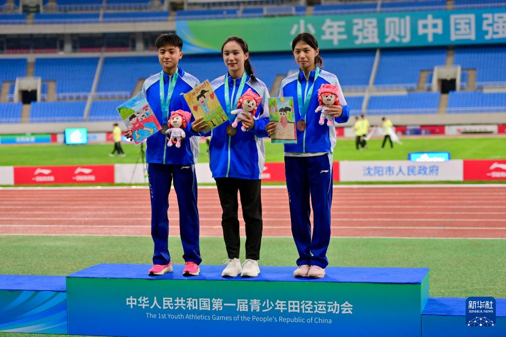 8月11日,冠军浙江队选手陈妤颉(中)、亚军广东队选手陈歆璇(左)和季军江苏队选手严欣怡在颁奖仪式上合影。