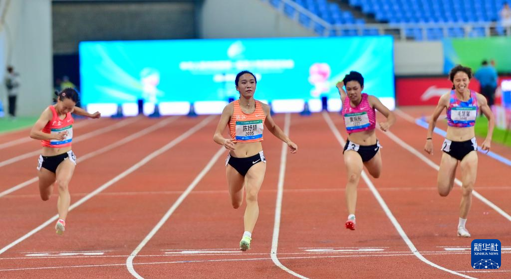 8月11日,浙江队选手陈妤颉(左二)在比赛中冲线。她获得冠军。