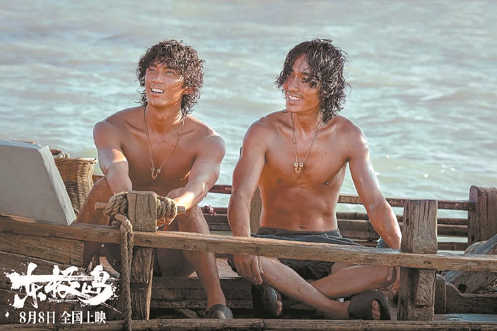 《东极岛》剧照,朱一龙(右)饰演阿赑,吴磊饰演阿荡。兄弟俩从最初为生存出海,到目睹日军暴行后主动承担责任,最终成为救援主力,主打“平凡人变英雄”的成长线。