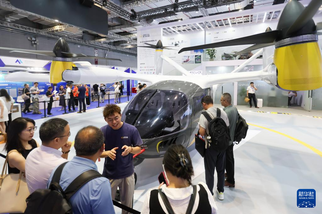 7月23日,人们在博览会沃飞长空展区了解产品情况。