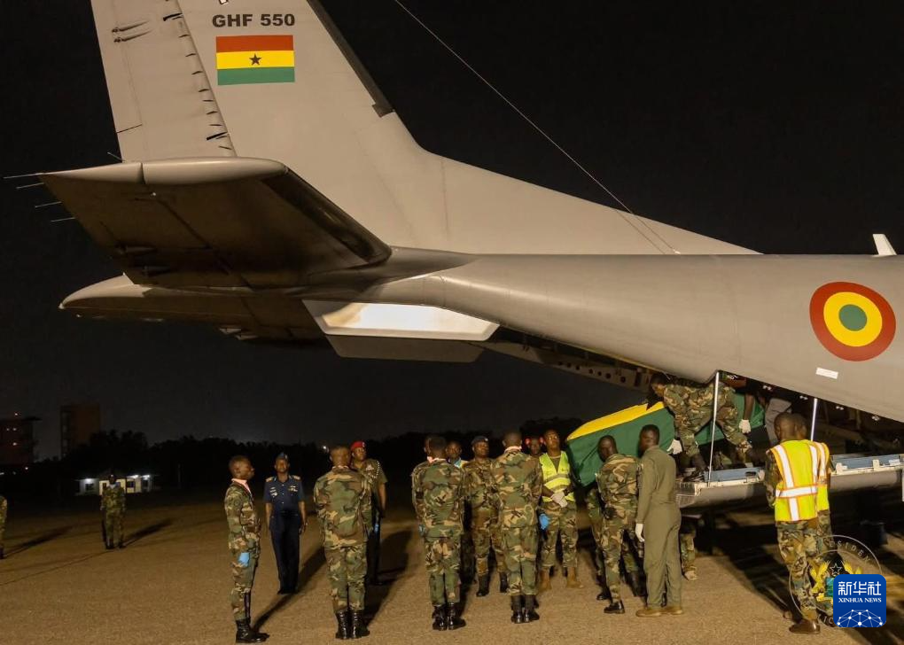 8月6日,士兵将遇难者棺椁运回加纳阿克拉空军基地。