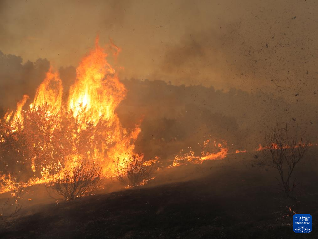 这是8月7日在美国加利福尼亚州文图拉县拍摄的山火现场。