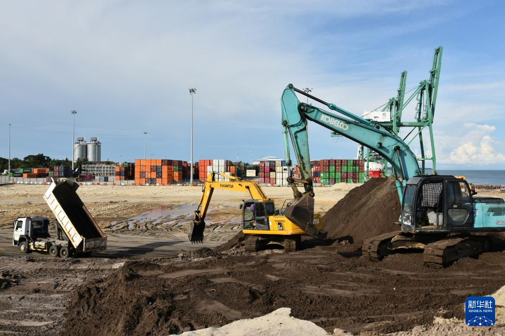 这是8月8日拍摄的文莱摩拉港集装箱码头扩建施工现场。新华社记者 李萌 摄
