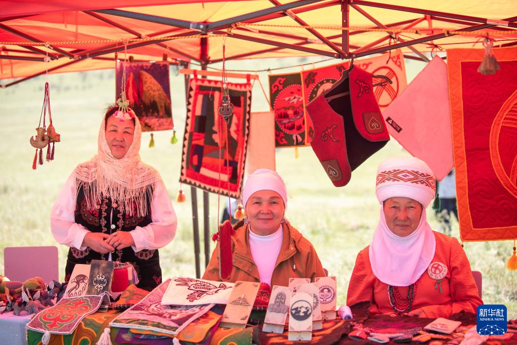 8月9日,人们在吉尔吉斯斯坦伊塞克湖南岸举行的生态文化艺术节上展示民间艺术品。