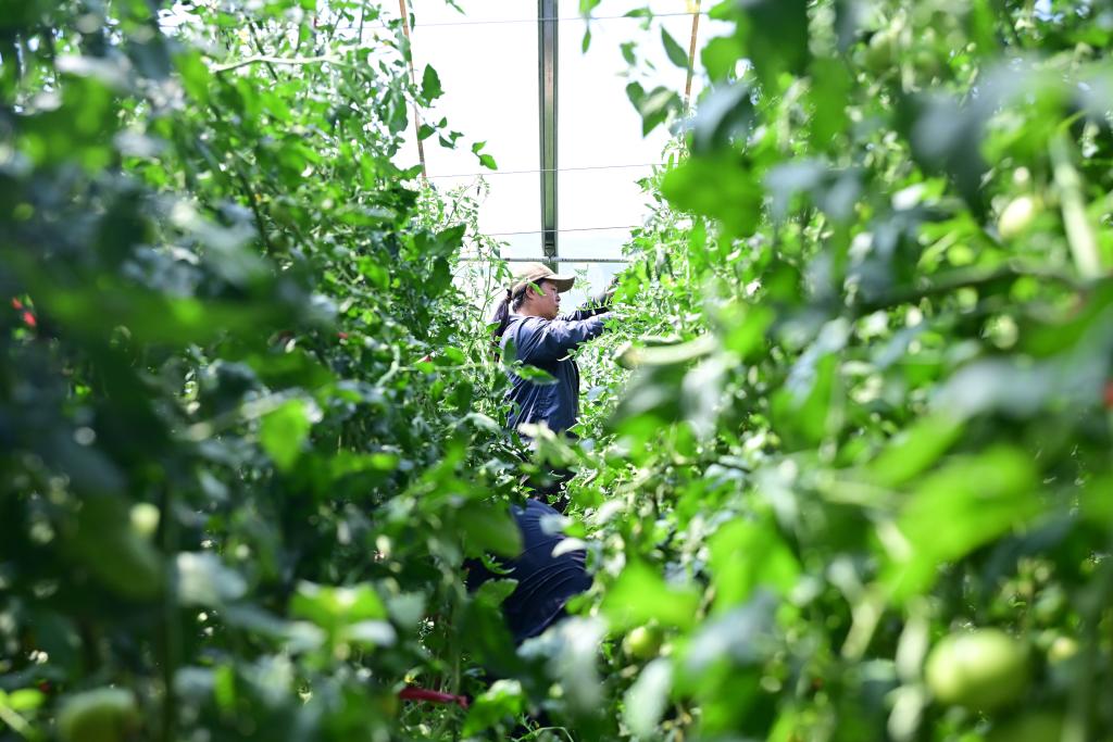 7月23日,青海省海东市乐都区的蔬菜大棚内,工人正在工作。新华社记者 齐芷玥 摄