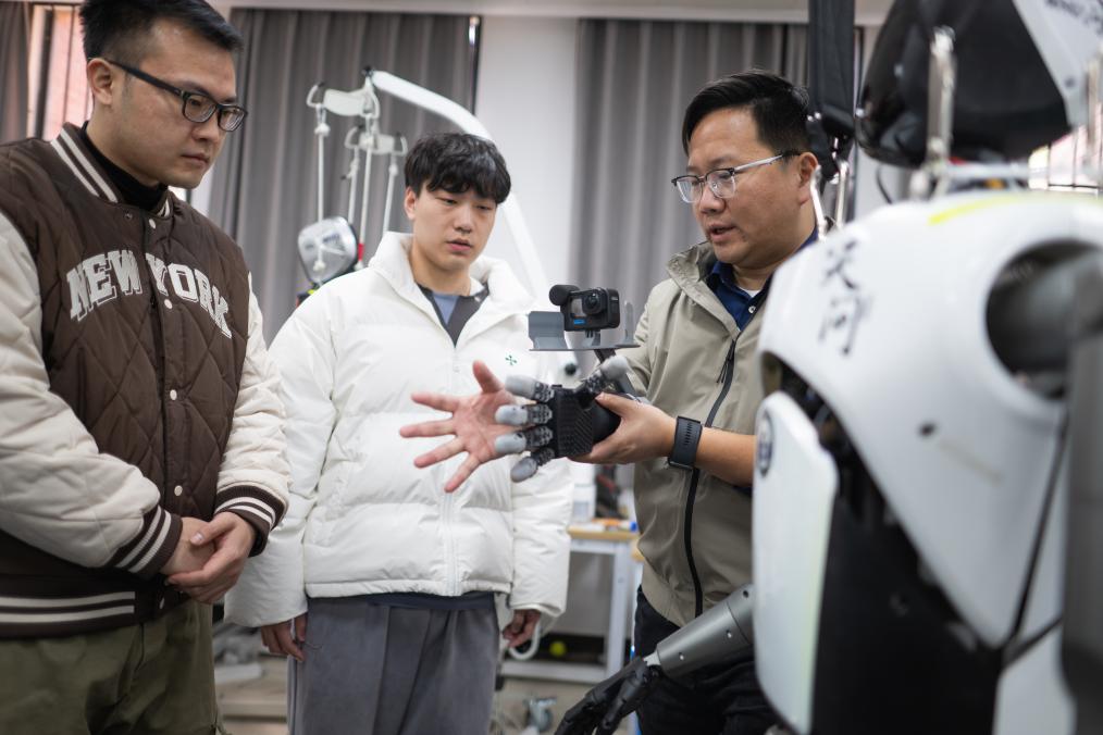 武汉大学研发团队在对“天问”人形机器人进行调试。新华社记者肖艺九 摄