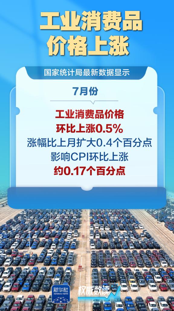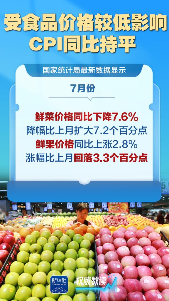 国家统计局最新发布数据显示,7月份,全国居民消费价格指数(CPI)同比持平,环比由上月下降0.1%转为上涨0.4%,服务和工业消费品价格上涨,带动作用明显,扩内需政策效应持续显现。