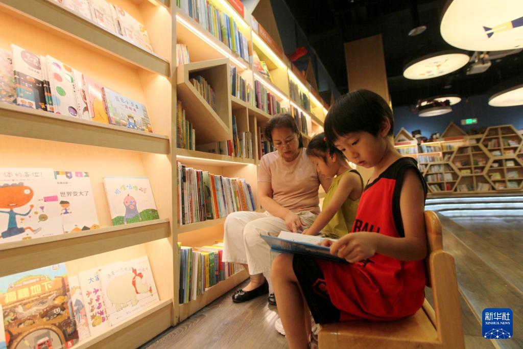 8月10日,在山东省滨州市博兴县新华书店,小朋友在阅读图书。