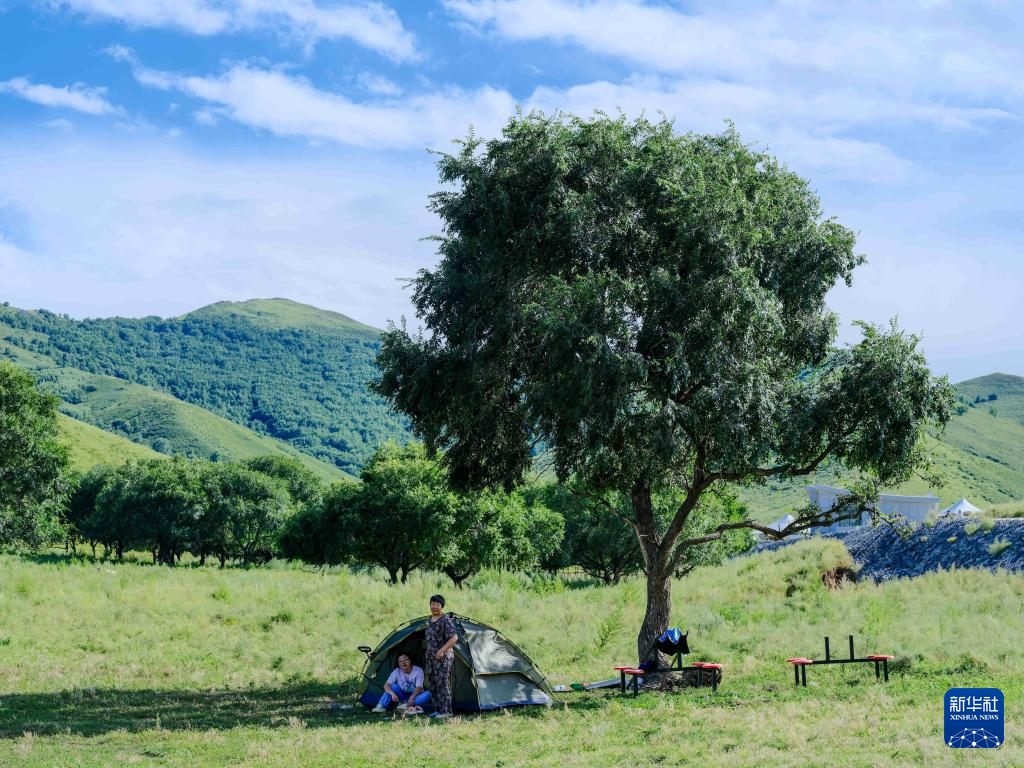 8月9日,游客在内蒙古兴安盟科尔沁右翼前旗乌兰毛都草原上露营休闲。