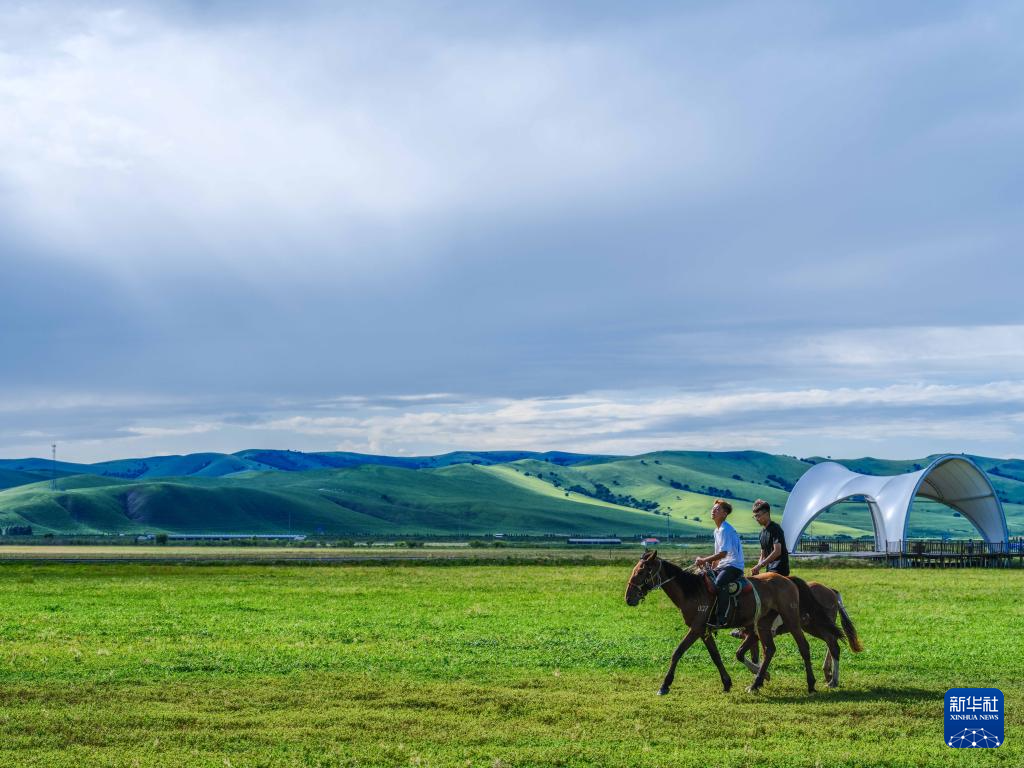 8月9日,游客在内蒙古兴安盟科尔沁右翼前旗乌兰毛都草原上骑马休闲。
