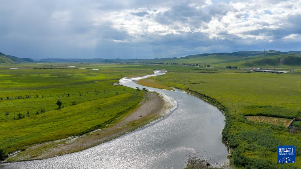 这是8月9日在内蒙古兴安盟科尔沁右翼前旗乌兰毛都草原上拍摄的乌兰河风光(无人机照片)。