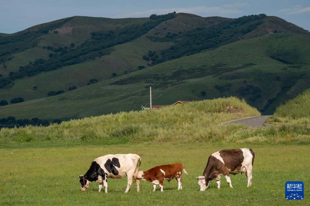 这是8月9日在内蒙古兴安盟科尔沁右翼前旗乌兰毛都草原上拍摄的牛群。