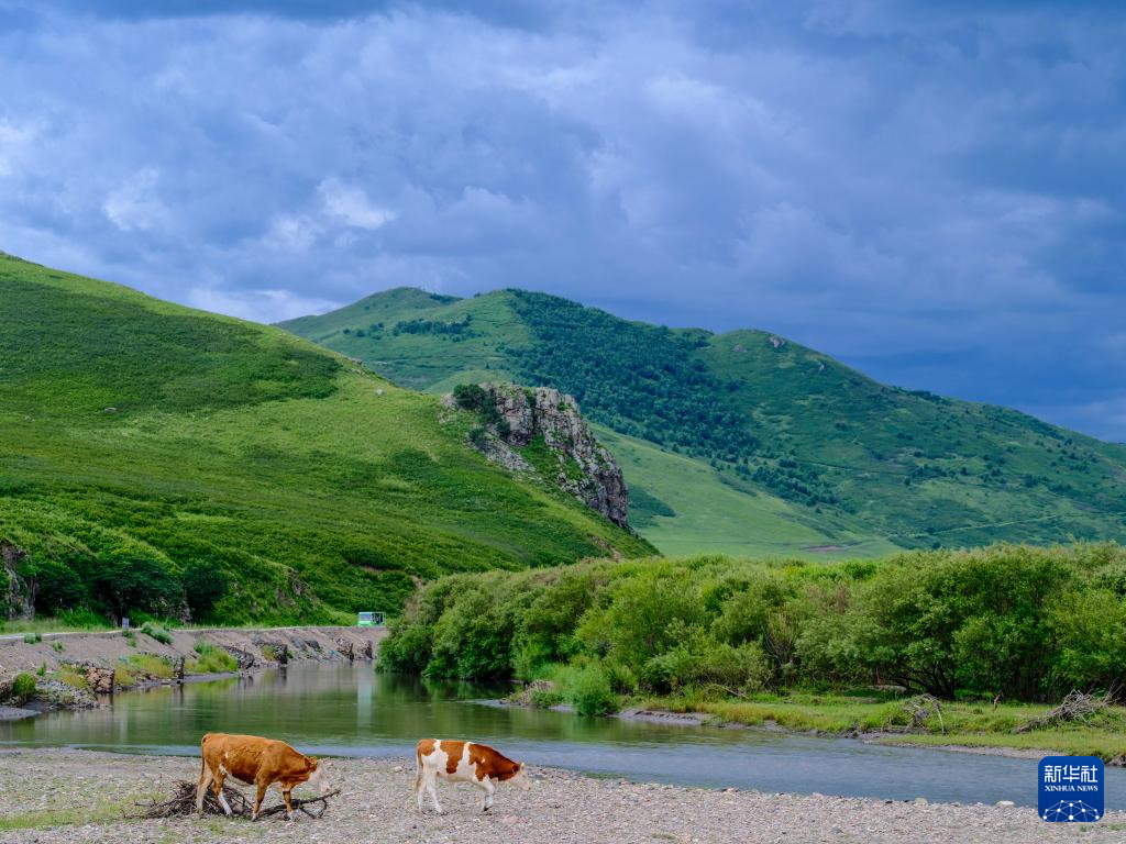 8月9日,在内蒙古兴安盟科尔沁右翼前旗乌兰毛都草原的乌兰河畔拍摄的牛。