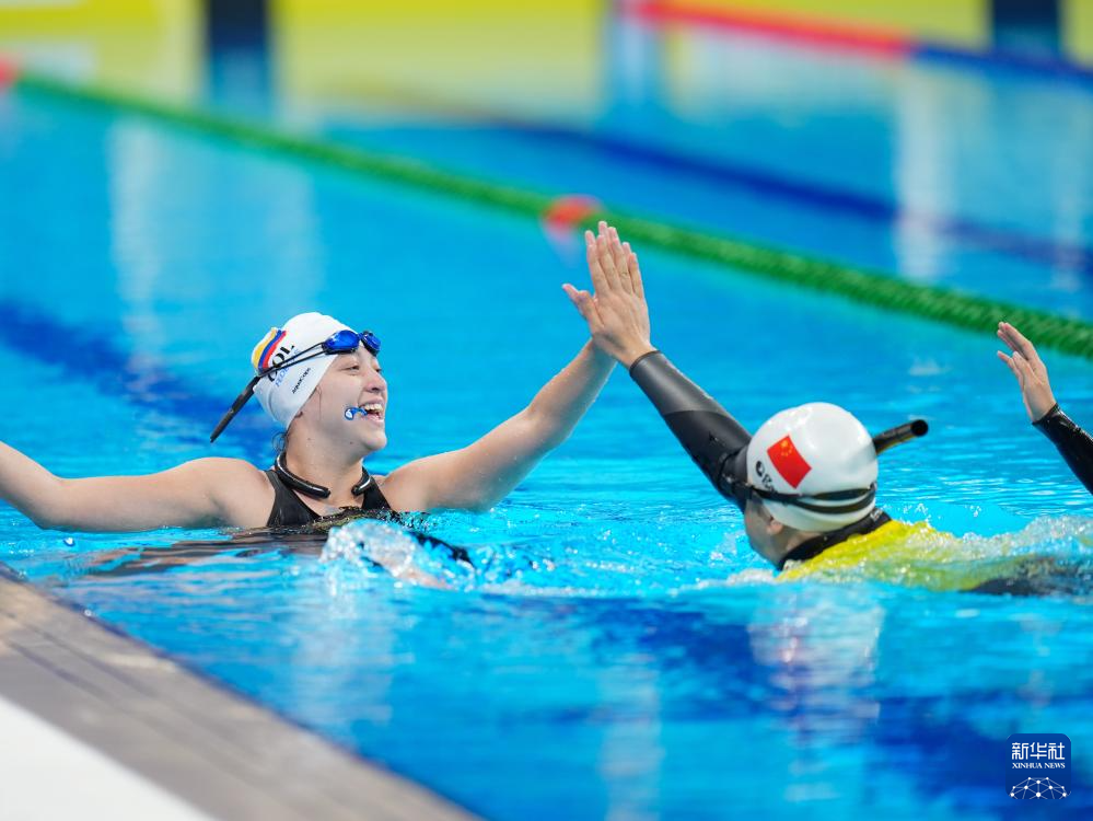 当日,2025年成都世运会自由潜水女子动态无蹼FFS1-FFS2决赛在成都体育学院三岔湖校区游泳馆举行,中国选手黄靖秋以91米的成绩夺冠。
