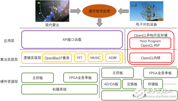在现代雷达系统中,随着有源相控阵和数字波束形成(DBF)技术的广泛应用,接收前端存在大量的数据需要并行处理,并需要保证高性能和低延迟的特点。雷达日益复杂的应用环境,让雷达系统具备自适应于探测目标和环境的能力,数字信号处理部分也需要使用多种更加复杂的算法,并且可以做到算法模块化,以及通过软件配置功能模块的参数,实现软件定义的功能。更大的数据处理带宽能够使雷达获得更高的分辨率,更高的工作频率使得雷达可以小型化,能够在更小的平台上安装,这样对于硬件平台实现也有低功耗的要求。