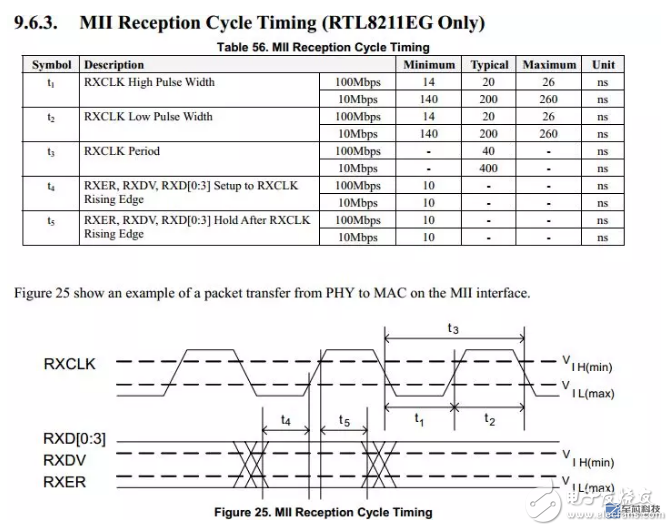 先说百兆网,百兆网的接口一般为MII(Media Independent Interface),当然10M网用的也是MII接口。下图是一块以太网PHY芯片的一些手册资料截图。