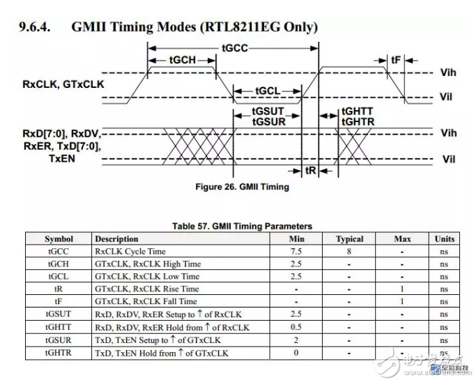 在百兆网模式下,其RXCLK的周期为40ns,也就是25M,数据端口RXD只用了4根线RXD[3:0],然后25M*4 = 100M,这样算出来,就是100M的速率了。接着再来说一下千兆网,千兆网的接口,就目前接触比较多的接口有3种,GMII,RGMII和SGMII。先说GMII,RxClk的周期为8ns,也就是125M,数据端口使用了8bit,125M*8 = 1000M,速率就是千兆网了。