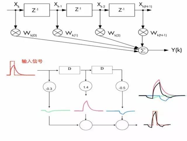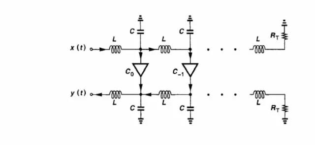 模拟串行链路中通常要求将数十个链路集成在一个芯片上,这就要求均衡器的功 率做到足够小。模拟 FIR 滤波器无需额外的高速 ADC,因此有可能实现低功耗高 速度。如图所示为模拟 FIR 滤波器的原理框图