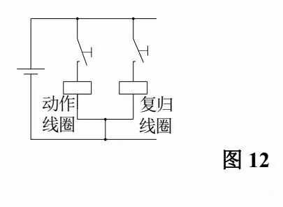 2.13.3 并联几只继电器使用的注意事项当磁保持继电器线圈与其它继电器线圈或螺线管并联时,请增加二极管防止反向电压影响继电器的正常工作。2.13.4 动作、复归时的最小脉冲宽度为了使磁保持继电器动作或者复归,请在线圈上施加超过说明书规定的动作或复归时间 5 倍以上时间的矩形额定电压,之后进行操作确认。如果脉冲宽度达不到上述要求,请在实际使用中进行试验确认。请避免在电源含有较多浪涌的条件下使用。2.13.5 双线圈型继电器的注意事项请不要同时向设定线圈和复位线圈施加电压,否则会使继电器异常发热、异常动作,甚至异常损耗。如图 12 所示,当电路上需要将动作线圈和复归线的任意一方端子连接起来,另一方的端子连在电源的同一极上时,请将要连接起来的两个端子直接连接(短路)再连接到电源上,这样可以保持两线圈之间的绝缘良好。