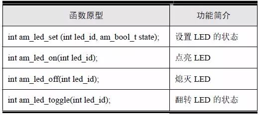 LED 有4 个通用接口函数,其中的am_led_on()和am_led_off()接口是基于am_led_set()接口实现的,详见程序清单8.1。