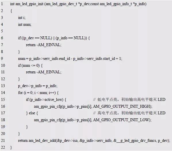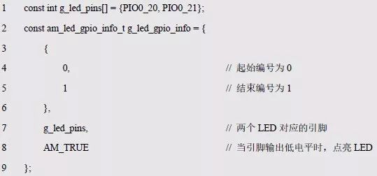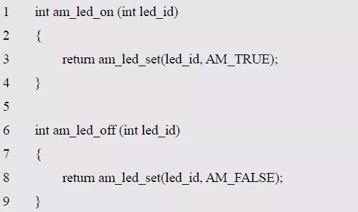 程序清单8.1 am_led_on()和am_led_off()接口的实现