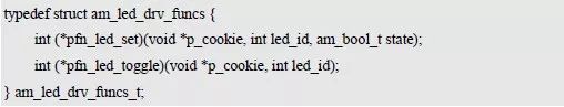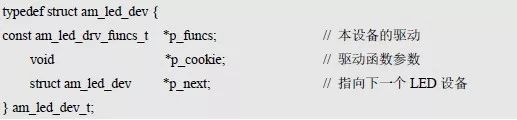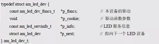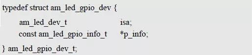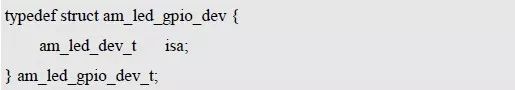 am_led_gpio_dev_t 即为具体的LED 设备类。具有该类型后,即可使用该类型定义一个具体的LED 设备实例: