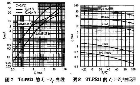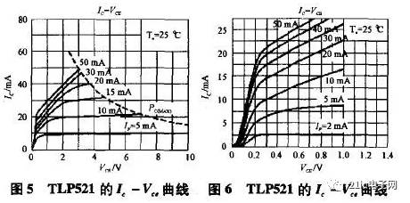 在比较之前,需要对实际的光耦TLP521的几个特性曲线作一下分析。首先是Ic-Vce曲线,如图5,图6所示。