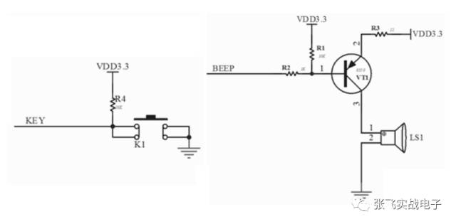 上图中,对于按键输入来说,在没有按下按键时,如果没有上拉电阻的存在,单片机端口将处于悬乎状态,没有确定电平,当然如果有内部上拉电阻的单片机除外,加上上拉电阻会,在没有按键时,单片机端口保持高电平,有按键时,单片机端口将输入低电平。而对于蜂鸣器来说,由于和按键有同样的效果,不加上拉电阻,无法区别在没有单片机控制时,三极管的工作状态,所以,必须加上上拉电阻以保障无单片机控制时,三极管截止,蜂鸣器不工作。