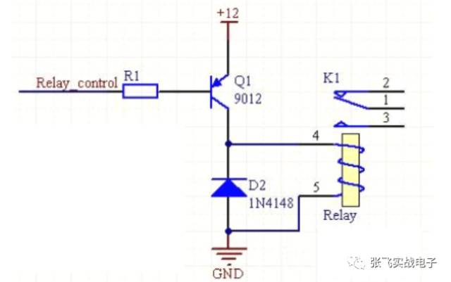 上图是继电器驱动常见电路,这里使用的是NPN三极管,高电平控制。为保证没有控制信号时,三极管处于截止状态,继电器不工作,这里加了一个10K的下拉电阻。为了限制基极的输入电流,这里使用了4.3K的限流电阻,保证在单片机控制下,最大输入电流Ib=(5-0.6)/4.3K=1mA。 同时,我们再次强调,在继电器端必须并联一个续流二极管,否则开关继电器的同时可能会损坏三极管,这一点我们在讲述二极管时已经说明。