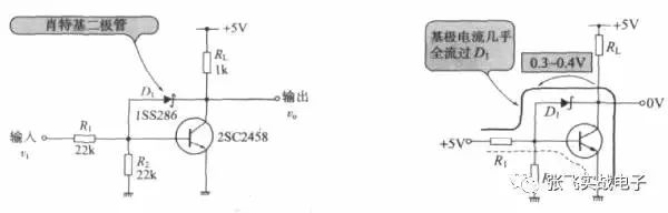 提高三极管开关速度的另外一种方法是添加肖特基二极管箍位。这里利用的是这种二极管是采用金属与半导体接触形成具有整流作用,这种二极管的开关速度很快。
