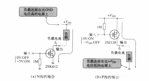 场效应管的开关电路和三极管的开关电路一样,都是可以从放大电路变化而得。这里不在说明其变化过程。