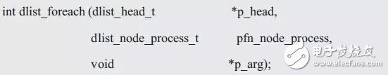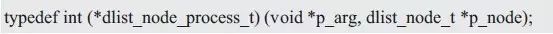 其中,p_head指向链表头结点,pfn_node_process为结点处理回调函数,每遍历到一个结点时,均会调用该函数,便于用户处理结点。dlist_node_process_t类型定义如下:
