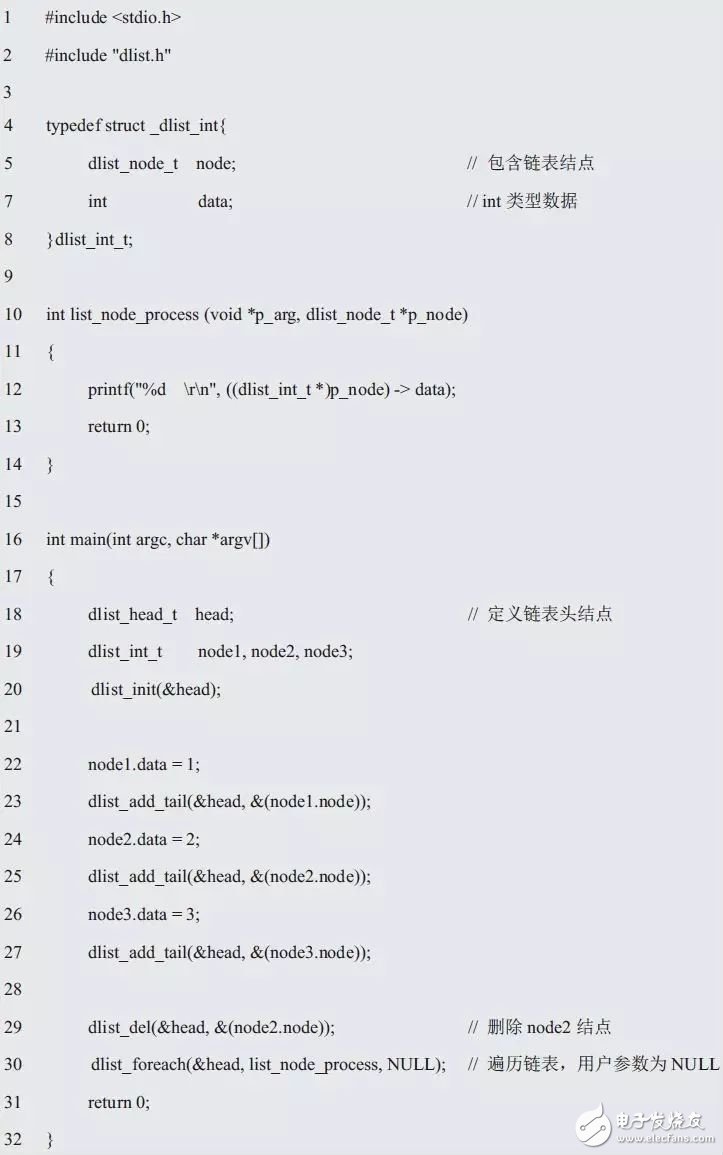 dlist_init()函数的实现详见程序清单3.33。