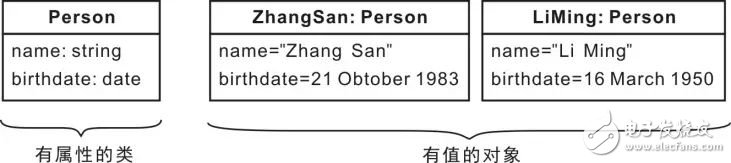 值是一段数据,属性描述了类的每个对象都拥有的一个值,可以这样类比——对象之于类如同值之于属性。比如,name、birthdate和weight都是Person对象的属性,color、modelYear和weight都是Car对象的属性。对于每个对象,每个属性都有一个值,比如,对象ZhangSan的属性birthdate的值是“21 October 1983”,也就是说,ZhangSan生于1983年10月21日。对于一个特定的属性,不同的对象可能会有相同或不同的取值。在一个类中,虽然每个属性的名字都是唯一的,但在所有的类中不一定是唯一的,比如,类Person和类Car都可能有一个名为weight的属性。