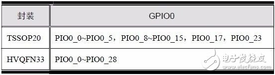 在默认情况下,除I2C 总线P0_10 和P0_11 没有可编程的上拉/下拉电阻和中继模式外,其它所有GPIO 的上拉电阻都被使能。在默认情况下,每个GPIO 仅分配给一个且仅一个外部引脚,外部引脚随后便由其固定引脚GPIO 功能来标识。但通过开关矩阵可将内部功能分配给除电源和接地引脚外的任意外部引脚,这些功能称为可转移功能。而晶体振荡器引脚(XTALIN/XTALOUT)或模拟比较器输入等某些功能仅可分配给具有适当电气特性的特定外部引脚,这些功能称为固定引脚功能。如果某个固定引脚功能未被使用,则可将其替换为任意可转移功能。对于固定引脚模拟功能,开关矩阵可使能模拟输入或输出并禁用数字端口。