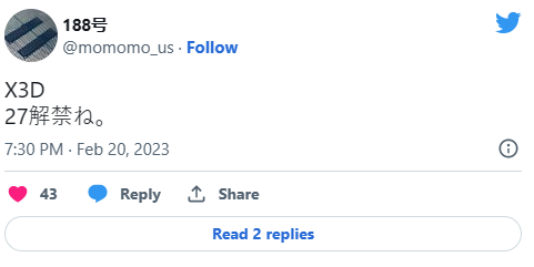 根据硬件泄露者@momo_us的说法,AMD已经将7000X3D的评估禁令定于2月27日。这就是说,那些考虑购买7000X3D系列的人可以在下一天开始发货之前阅读评论。