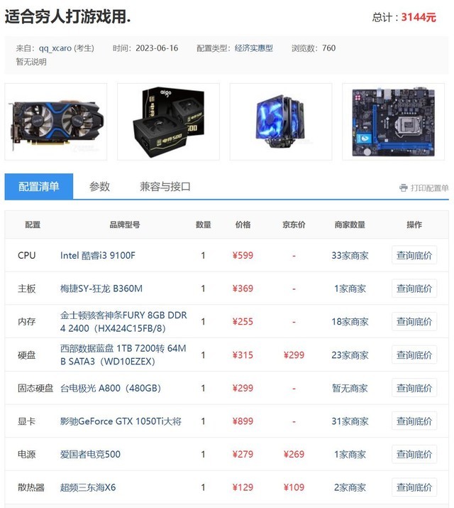 今天我们看到的这个配置单叫做“适合穷人打游戏用”,但是没有把性价比压榨出来,我们就可以通过吧intel换成AMD优化性能。