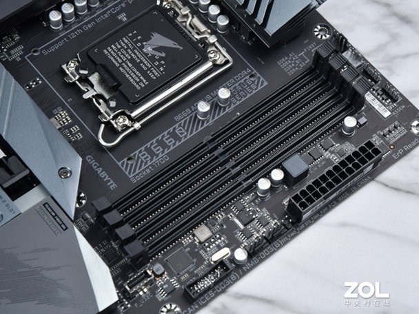 技嘉 B660主板插槽与Z690一样,同样为LGA1700,防呆卡扣有4个,只支持12代酷睿处理器,与前几代酷睿不兼容。