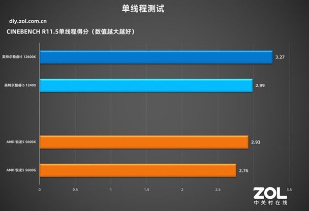在这4款游戏中,《CS:GO》这款网游酷睿i5-12400无法压制锐龙5 5600X,但是其余三款单机游戏,整体表现酷睿i5-12400都超过了锐龙5 5600X,作为一款未来装机入门产品,酷睿i5-12400的游戏性能相当可以。