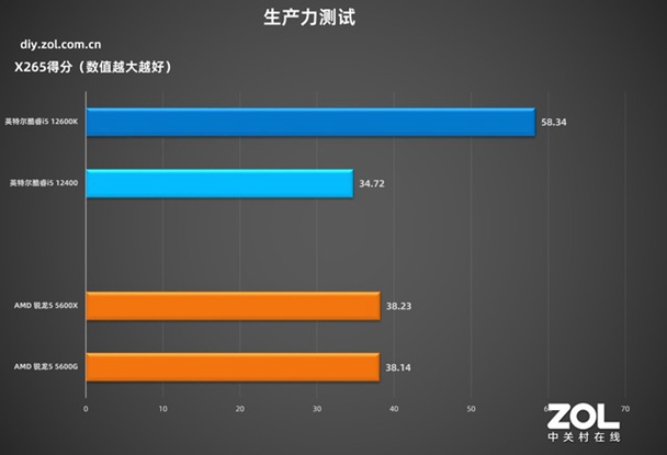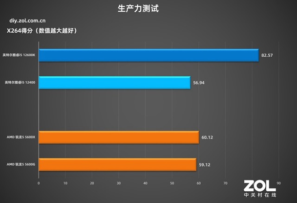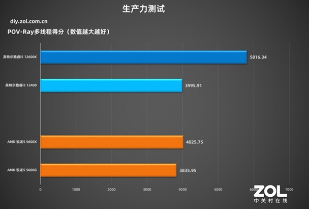 生产力测试成绩确实如我们前面所说,整体和多线程趋势相差不多,不过因为优化等因素,酷睿i5-12400在X265/X264两款解码测试中不如锐龙5 5600G,而又在POV-Ray的多线程和单线程上超过了锐龙5 5600X,所以在涉及实战测试的时候,不仅仅依靠处理器本身性能,还要有强大的生态加持才会有更好的表现,使用也不容易出现BUG。