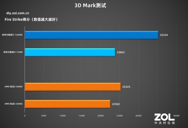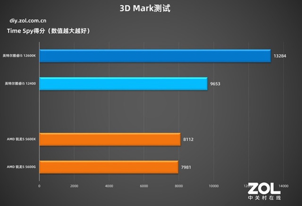 在3D Mark这款老牌的测试软件上,酷睿i5-12400整体有更大的优势,成绩不仅全部超过了锐龙5 5600G,除了Fire Strike物理性能外也全都超过了锐龙5 5600X。