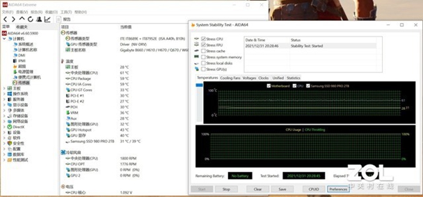 最后咱们来进行一下功耗和拷机测试,使用功耗仪记录处理器在待机时以及AIDA 64拷机时的满载功耗