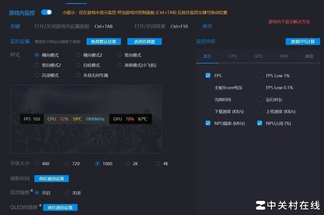 此外游戏加加这款软件,也针对AMD的Ryzen AI做了优化,新版游戏加加中在设置选项里可以选择监控NPU频率以及占用方面的信息,开启后,游戏顶部的监控条中就会追踪显示NPU的频率和占用率了。