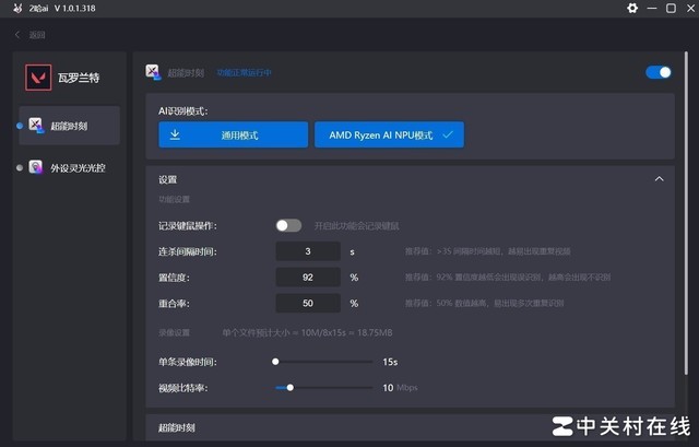 而且在游戏加加的超能时刻功能中,专门也为NPU设计了AMD Ryzen AI NPU模式,通过NPU来记录游戏中的精彩瞬间,不会占用CPU,从而减少对游戏帧数和画面稳定性的影响。