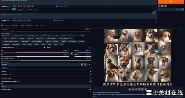我们采用了经典的anything-v5-PrtRE.safetensors [7f96a1a9ca]模型,分辨率:512*512,提示词为Prompt: 8K raw masterpiece,realistic, photorealistic,studio light, 1dog,步进数20,种子数1000000000。