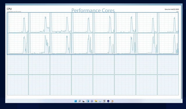 根据官方演示来看,13代酷睿Raptor Lake处理器运行Adobe Premiere等内容创作软件时主要吃,其中主要依靠能效核,并全部跑满。