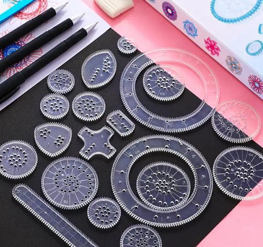 细心观察的话,咱们人民币上的花纹就应用了繁花曲线。一把尺子可以画出成千上百种图案,家长可以陪着孩子一起玩,孩子开发智力,家长寻找童年