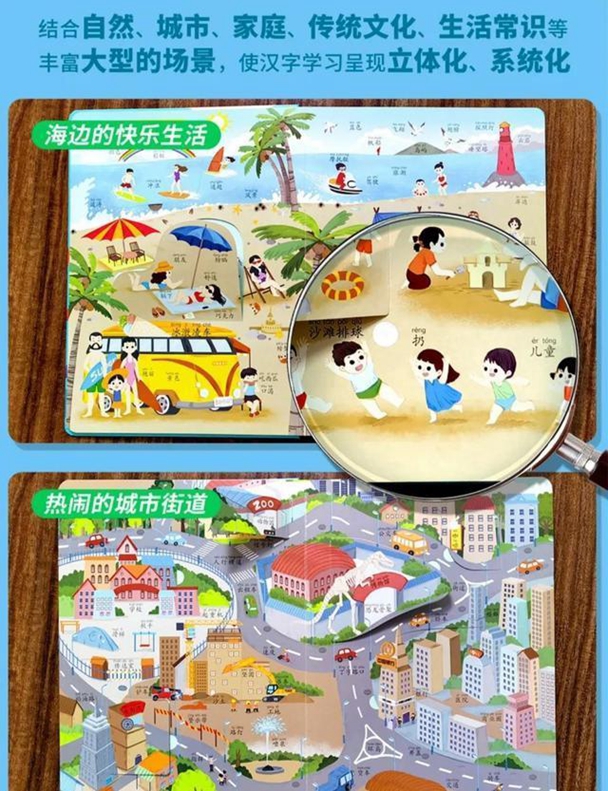 结合自然、城市、家庭、传统文化、生活常识等丰富的大型场景,帮孩子建立知识的深度和广度,使汉字学习立体化、系统化。