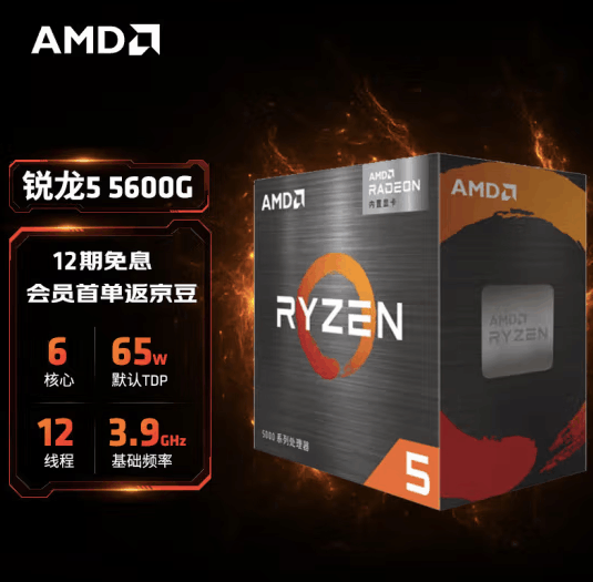 AMD 锐龙5 5600G处理器(r5)7nm 搭载Radeon Graphics 6核12线程 3.9GHz 65W AM4接口 盒装CPU