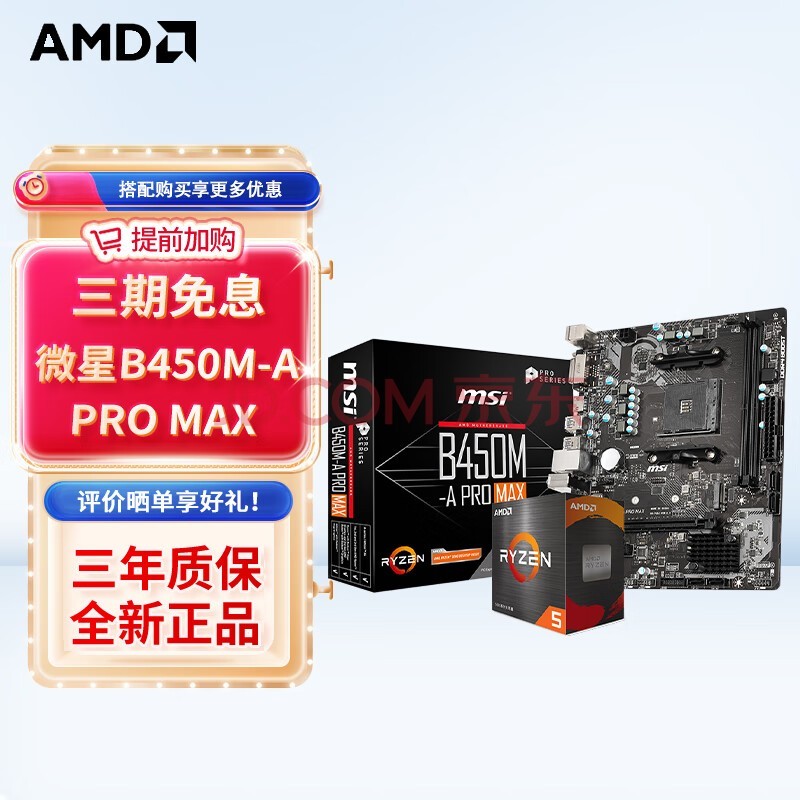 AMD 锐龙CPU 处理器 搭华硕B450B550CPU主板套装 板U套装 微星B450M-A PRO MAX R5 5600(散片)套装